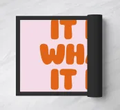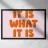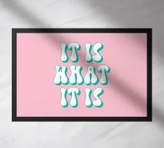 Un'opera d'arte tipografica semplice ma decisa, con la frase "It Is What It Is". Con linee pulite e un layout equilibrato, questo disegno cattura la calma accettazione del flusso della vita.