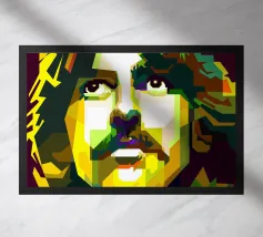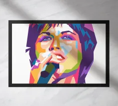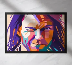Un'audace e colorata illustrazione WPAP (Wedha's Pop Art Portrait) di Jeff Beck, il leggendario chitarrista noto per il suo sound innovativo e la sua tecnica magistrale. L'opera d'arte presenta forme geometriche nitide e colori vibranti e contrastanti, che catturano la sua energia espressiva e il suo spirito artistico. Il suo look iconico, con capelli fluenti e sguardo intenso, è stilizzato attraverso modelli angolari dinamici, che riflettono il suo impatto rivoluzionario sulla musica rock e blues. Questo ritratto WPAP trasforma l'eredità di Beck in un capolavoro visivo di grande impatto, che incarna la sua presenza elettrizzante e la sua influenza senza tempo.