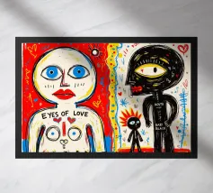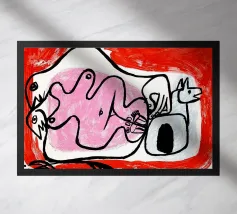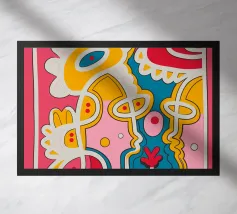 Con The Colorwatcher, Emmanuel Signorino fonde l'estetica dei graffiti e l'astrazione geometrica in una vibrante scena pop-surreale. Le sue linee nere e decise, le forme dinamiche e la vivace tavolozza di arancione, giallo e rosa creano un'opera che sembra viva con ritmo urbano e precisione artistica.