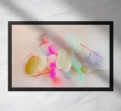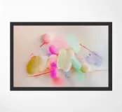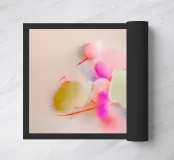 Quest'opera d'arte astratta presenta forme ovali luminose e spruzzi dinamici di colore in rosa neon e tonalità pastello. Le pennellate espressive creano un gioco di movimento, luce e colore. Una composizione pop art moderna che irradia energia e gioia di vivere.
