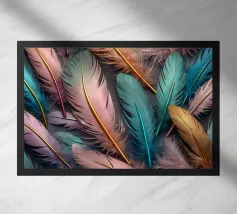 Una collezione di piume colorate riempie la vista con ricche tonalità di blu, verde, giallo e rosso. I loro intricati disegni esemplificano la creatività e la diversità della natura e invitano all'ammirazione.