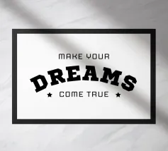 Poche parole e tanta verità! Un design che si adatta al motto della vita. LASCIA CHE I TUOI SOGNI DIVENTINO REALTÀ. Fallo, non limitarti a sognarlo! Una tipografia minimalista con un tocco di colore versato addolcisce la vostra giornata.