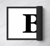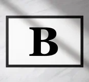 La lettera "B" è rappresentata in nero puro e posta al centro di uno sfondo bianco puro. Il contrasto tra bianco e nero è molto netto e chiaro.