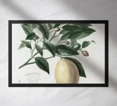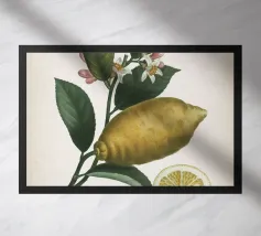 Questa illustrazione botanica vintage presenta un limone splendidamente dettagliato con foglie verdi e un delicato fiore bianco, evocando un senso di stampe naturalistiche classiche e di eleganza retrò. Ispirata da antiche incisioni botaniche, questa opera d'arte senza tempo conferisce una fresca estetica estiva boho e tropicale, perfetta per l'arredamento della cucina, gli amanti della natura e gli appassionati di arte botanica. Aggiungete un tocco di fascino mediterraneo e di freschezza agrumata a qualsiasi spazio!