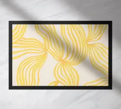 Le strisce gialle e grigie si intersecano per formare un motivo a griglia dinamico, creando un senso di profondità e movimento nella composizione. Le linee sovrapposte e le varie tonalità conferiscono al pezzo un'atmosfera geometrica e astratta.