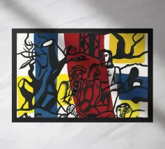 Entrate nell'avventuroso mondo di Fernand Léger con questo accattivante poster di "Étude pour Le campeur" (1953). Questo pezzo vibrante mostra il caratteristico stile cubista di Léger, con una figura robusta e stilizzata di un campeggiatore in mezzo a elementi all'aperto, resa con contorni audaci e una tavolozza giocosa. La composizione dinamica e il senso di svago gioioso sono caratteristici della celebrazione di Léger del dopoguerra della vita ordinaria e del tempo libero. Questa riproduzione d'arte digitale di alta qualità, a 7000x5000 pixel e 300 dpi, cattura perfettamente la precisione grafica e lo spirito vivace dell'originale di Léger.