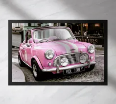In una pittoresca strada di Londra, un'elegante auto d'epoca passa davanti a facciate di mattoni con un'atmosfera retrò e senza tempo dell'architettura britannica, mescolando storia e nostalgia urbana.