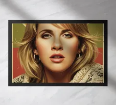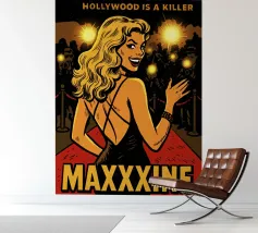 Tributo sfacciato a "Please Please Please" di Sabrina Carpenter, che cattura l'energia ad alto tasso di dramma e di lucentezza dell'amare qualcuno con un talento per il caos. Disegnata in un audace stile da fumetto retrò, quest'opera d'arte presenta un'eroina glamour e strabica in bilico tra bandiere rosse e rossetto rosso.