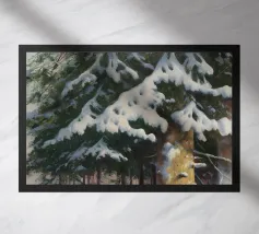 Una tranquilla mattina d'inverno si dispiega in questo dipinto d'atmosfera: un sentiero innevato nella foresta conduce attraverso alti abeti ricoperti di brina. La luce delicata del sole nascente filtra attraverso gli alberi e inonda il paesaggio di un caldo bagliore dorato. Le tracce sulla neve raccontano il movimento nella quiete: natura, pace e luce si combinano per creare un armonioso idillio invernale.