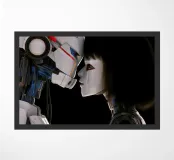 Due androidi bianchi e lucidi quasi si toccano le labbra: lui un robot da combattimento spigoloso, lei una bellezza delicata, quasi da geisha, con accenti rossi. Ispirato a "Ghost in the Shell" di Shirow Masamune, ai robot pin-up di Hajime Sorayama e all'estetica di Blade Runner. Il freddo metallo incontra il tenero desiderio, la tecnologia diventa anima. Questa immagine è pura poesia fantascientifica: erotica, malinconica, futuristica. Perfetto nella sua esecuzione, soprattutto per i gamer loft, i fan del cyberpunk e chiunque non sia freddo nei confronti della cultura giapponese contemporanea, dei manga e degli anime.