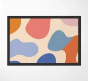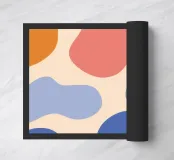 Un'armoniosa composizione astratta di forme organiche sovrapposte in una morbida e calda tavolozza di colori pastello. L'opera d'arte è delicata e moderna, con una qualità ritmica e rilassante.
