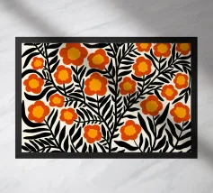 Lasciatevi incantare da questo disegno di papaveri in arancione brillante. La composizione di tendenza dallo stile moderno combina l'eleganza dell'arte tessile scandinava con il fascino senza tempo dell'estetica di metà secolo. La chiara tavolozza di colori, composta da corallo brillante, toni indaco vellutati e beige cremoso, crea un'atmosfera armoniosa che ravviva immediatamente qualsiasi ambiente. Le linee grafiche e la disposizione ritmica dei fiori ricordano i motivi iconici di Marimekko e le forme organiche degli anni Sessanta. Una dichiarazione contemporanea per un design ispirato alla natura.