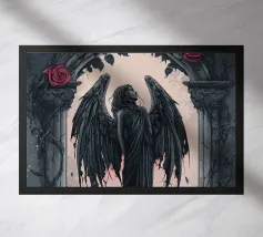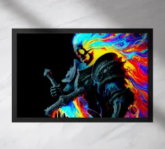 Questa cupa raffigurazione mostra il Tristo Mietitore in un'aura gelida, quasi spettrale. Avvolta in un lungo mantello a brandelli, la sua forma scheletrica si staglia minacciosa da un turbine di nebbia fredda. Il cappuccio nasconde solo parzialmente il suo volto, rivelando un teschio spettrale con occhi luminosi. La sua mano ossuta regge un'imponente falce, la cui lama sembra fatta di ghiaccio spezzato e brilla minacciosamente. Frammenti di ghiaccio fluttuano intorno ad essa, conferendo al motivo un brivido mistico.