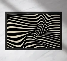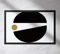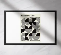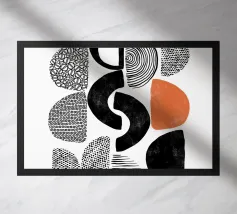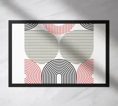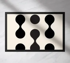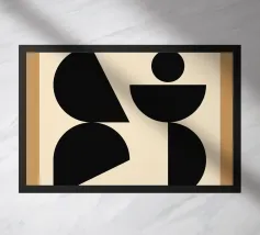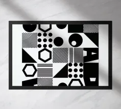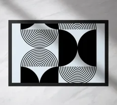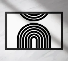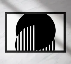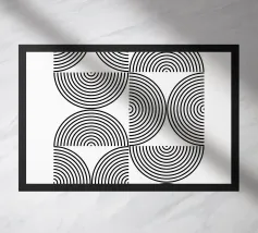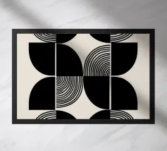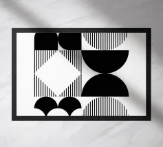 Il design pulito incontra la tensione visiva: questo motivo minimalista in bianco e nero combina forme geometriche come semicerchi, rombi e griglie di linee per creare un'opera d'arte moderna. Ideale come poster, cuscino, maglietta o murale - perfetto per gli amanti del Bauhaus, della metà del secolo e dei design monocromatici.
