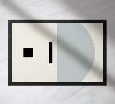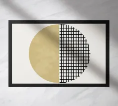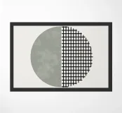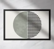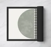 Opera d'arte geometrica minimalista con linee nere e una forma rotonda in verde salvia e texture su sfondo beige. Opera d'arte moderna astratta con texture morbide per interni in stile bohémien, moderno, industriale e basic. Bella per il soggiorno, lo studio e l'ufficio.