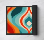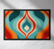 Quest'opera d'arte è un'illusione ottica ipnotica e un omaggio all'arte psichedelica e all'op art della fine degli anni '60 e dell'inizio degli anni '70. Forme curve e fluide in rosso fiammeggiante e arancione caldo incontrano i toni freddi del turchese e del blu-verde, creando una tensione dinamica, ardente ma acquatica. La simmetria verticale e i motivi stratificati a forma di goccia ricordano i disegni iconici di tessuti e carte da parati dell'epoca. Il motivo crea un'incessante attrazione visiva e sembra quasi respirare. Un richiamo visivo energico e ipnotico.