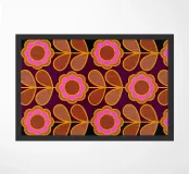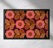 Fate una dichiarazione con questo audace motivo floreale mid-mod. Margherite astratte su steli frondosi sono reimmaginate in uno stile grafico retrò, con accenti rosa, marrone terra e ocra su uno sfondo viola intenso.