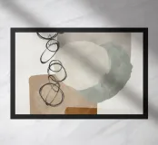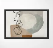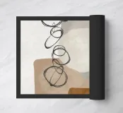 Arte digitale astratta con linee, forme organiche e geometriche con texture e pennellate nere nei toni morbidi della terra di marrone, grigio, blu e beige. Arte moderna per interni essenziali, scandinavi, bohémien e boho. Godetevi l'arte digitale minimalista con forme e linee morbide. Adatto a soggiorni, camere da letto, uffici e corridoi.