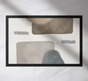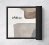 Arte digitale astratta caratterizzata da linee, forme organiche e geometriche con texture nei toni morbidi del marrone, del blu e del beige. Arte moderna per interni essenziali, scandinavi, bohémien e boho. Godetevi l'arte digitale minimalista con forme e linee morbide. Adatto per un soggiorno moderno, una camera da letto, un corridoio, uno studio o un ufficio.