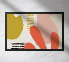 Una composizione minimalista e astratta di forme organiche in una tavolozza morbida e terrosa. La disposizione suggerisce sottilmente un volto di profilo, creando un pezzo sereno e al tempo stesso stimolante.