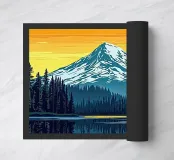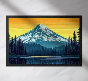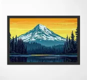Immerso in calde tonalità crepuscolari, il Monte Bachelor si erge maestoso sopra una fitta foresta di sempreverdi. Le cime innevate contrastano delicatamente con le creste ondulate, mentre il cielo si illumina di tenui colori pastello. Questa opera d'arte originale evoca la pace, la meraviglia e la tranquilla grandezza della natura selvaggia dell'Oregon, ideale per gli amanti della natura e i sognatori.