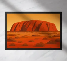 Disegno di viaggio minimalista della Namibia con Deadvlei o Sossusvlei nel Namib. Questo motivo tipico del paesaggio africano è perfetto per tutti i viaggiatori della Namibia che amano le dune di sabbia e i pittoreschi alberi di cammello.