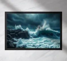 "Ocean Storm 2" mostra la cruda potenza del mare in forma digitale. Strutture astratte di onde e forti tonalità di blu si fondono in una composizione emozionante. La grafica generata al computer conferisce dinamismo e profondità a qualsiasi ambiente. Stampata su carta fine art di alta qualità o su tela, l'opera è ideale per ambienti di vita o di lavoro moderni.