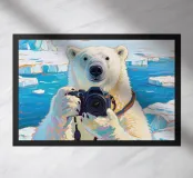 Orso polare che tiene la macchina fotografica con pittura fauvismo stile arte