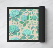 Bellissimo motivo floreale di ortensie con fiori di ortensia verde salvia e foglie verdi, su uno sfondo color pesca.
