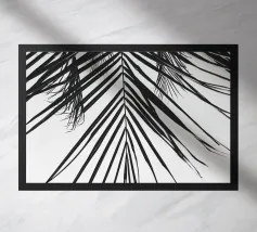 Palma botanica in bianco e nero in un parco di Marrakesh, Marocco.
