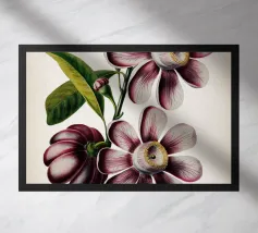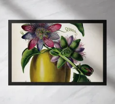 "Passiflore Ailée" (1827) di Pierre-Joseph Redouté è un'affascinante illustrazione botanica d'epoca che raffigura l'esotica passiflora alata (Passiflora alata). L'opera d'arte cattura con magistrale precisione gli intricati dettagli degli appariscenti petali bianchi e viola, dei delicati viticci e del rigoglioso fogliame verde. La tecnica morbida dell'acquerello di Redouté esalta l'eleganza naturale del fiore, rendendolo un pezzo senza tempo per gli amanti dell'arte botanica, per gli appassionati di decorazioni vintage e per i progetti di tessuti floreali. Un'aggiunta perfetta a qualsiasi collezione ispirata alla natura.