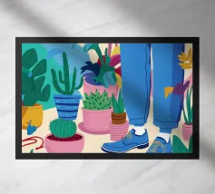 Una bella macchia di fiori selvatici stilizzati e stravaganti è illustrata in un affascinante stile ispirato all'arte popolare, con un delizioso mix di colori e forme che irradiano gioia e bellezza naturale.