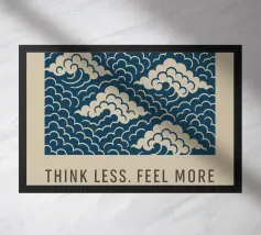 Questo poster combina un motivo di nuvole di ispirazione tradizionale con una moderna combinazione di colori corallo - morbidi, caldi e positivi. Il messaggio "Think Less. Feel More - Mindful Bliss" completa il disegno per creare un quadro d'insieme armonioso per ambienti pieni di leggerezza. Ideale per camere da letto, spazi abitativi luminosi o oasi creative che intendono irradiare gioia e consapevolezza.