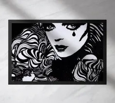 "Il centro del mio lavoro: Un universo grafico, monocromatico e surreale e la ragazza dai capelli neri."