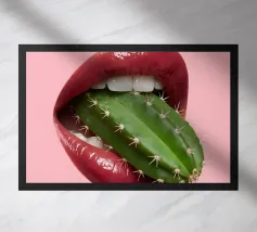 A whimsical image of a red balloon perched delicately on a spiky cactus, set against a bright blue sky. The playful juxtaposition of fragility and danger creates a striking and surreal visual concept.
