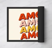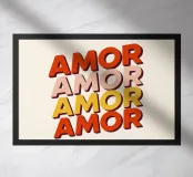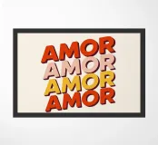Ravvivate il vostro arredamento con questo poster Amor, caratterizzato da ripetizioni colorate. Una creazione grafica retrò che mescola romanticismo e stile pop, ideale per portare calore ed energia alla vostra casa.