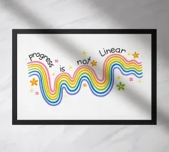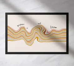 Una composizione astratta di onde che simboleggia la crescita, le battute d'arresto e lo slancio. I morbidi colori pastello scorrono in modo organico, riflettendo la realtà che il progresso si muove in curve, non in linee rette. Un promemoria visivo calmo ma potente per fidarsi del processo, abbracciare il cambiamento e continuare ad andare avanti al proprio ritmo.