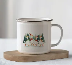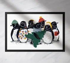 Questa festosa opera d'arte natalizia raffigura quattro giocose oche che indossano cappelli e sciarpe a maglia colorate e che danzano gioiosamente insieme in una foresta innevata di pini. Dipinto a mano in morbido acquerello, cattura lo spirito allegro degli animali del bosco in inverno. Perfetto per tessuti, carte da parati e accoglienti progetti stagionali, questo affascinante disegno aggiunge calore vintage e stravaganza alle tradizioni natalizie. Create da Uta Naumann, le oche portano la magia e l'allegria nostalgica delle feste, rendendole una scelta deliziosa per le celebrazioni festive, l'artigianato invernale e le decorazioni ispirate al bosco.