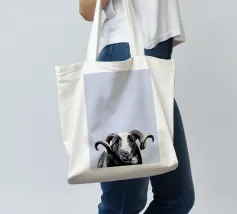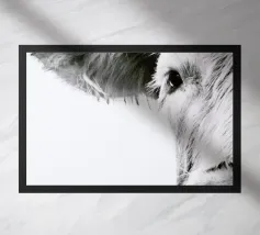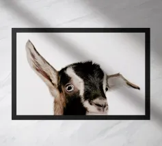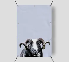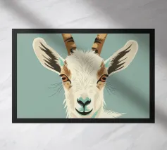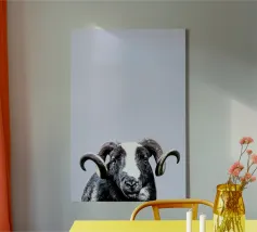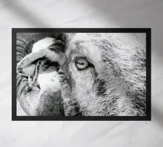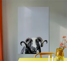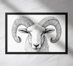 Immergetevi nel fascino rustico di questa splendida fotografia con un maestoso montone. Questa accattivante stampa di animali da fattoria è perfetta per gli amanti degli animali e per chiunque voglia aggiungere un tocco di atmosfera rurale al proprio arredamento.
