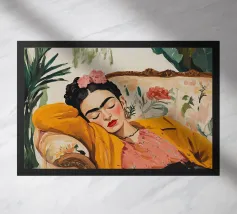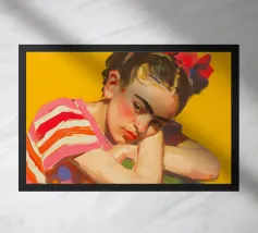 Questa suggestiva opera d'arte raffigurante una giovane musa messicana a un tavolo verde illumina qualsiasi ambiente con colori vivaci. Il suo giocoso top a righe e il fiocco per capelli cremisi spiccano su uno sfondo dorato, fondendo l'atmosfera di metà secolo con il fascino boho chic. Ideale per stampe d'arte, tessuti e decorazioni per la casa, questo disegno irradia calore e personalità. Perfetto per chi è alla ricerca di accenti eclettici, il pezzo fonde influenze culturali e stile retrò per creare un punto focale accattivante che ispira. Celebra il patrimonio culturale.