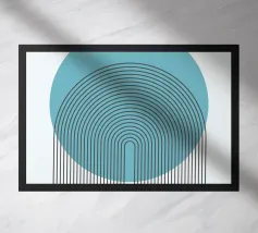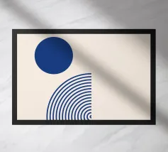 Questo design moderno e retrò combina linee nere pulite con una forte tonalità di blu e crea un mix armonioso di geometria, minimalismo e fascino di metà secolo. Gli archi semicircolari creano un effetto strutturato ma artistico, ideale per soggiorni, uffici o studi creativi. Un motivo senza tempo per chi apprezza le forme moderne e l'estetica calma ed elegante. poster geometrico, design retrò, arte murale moderna, stampa d'arte astratta, design minimalista, arte murale blu, poster line art, metà secolo moderno, forme geometriche, geometria astratta, decorazione murale per interni.
