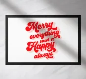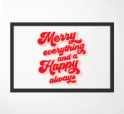 Celebrate la stagione delle feste con un tocco di allegria! La scritta "Merry Everything and Happy Always" risplende in un font retrò dal carattere audace, con un'ombra rosa chiaro su sfondo bianco. Questo design eccentrico e minimale porta positività e dà il tono per abbracciare il nuovo anno con gioia e infinite possibilità. Perfetto per diffondere l'allegria delle feste con un'atmosfera giocosa e retrò su una grande varietà di prodotti, che saranno anche dei deliziosi regali di Natale.