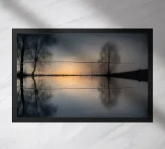 L'acqua sottostante rispecchia perfettamente l'albero, catturando ogni foglia e curva in un riflesso morbido e scintillante. La superficie è calma, come il vetro, e sfuma il confine tra la realtà e il suo gemello specchiato. Mentre la luce si sposta delicatamente sulla scena, il riflesso sembra muoversi con essa: una danza tranquilla di natura e acqua, bellezza ed equilibrio.