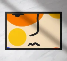 Il ritratto astratto di un volto è creato con linee blu fluide e ondulate su uno sfondo bicolore, dando vita a un'opera d'arte fluida, espressiva e moderna.