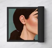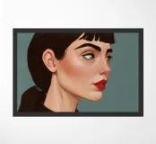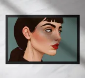 Il ritratto intenso e suggestivo di una donna con capelli scuri, occhi penetranti e un audace rossetto rosso รจ reso in uno stile pulito, moderno e realistico, che cattura uno sguardo di tranquilla forza e sicurezza.