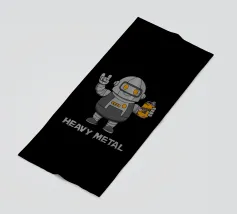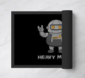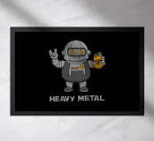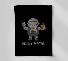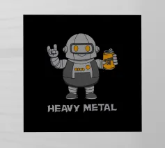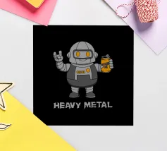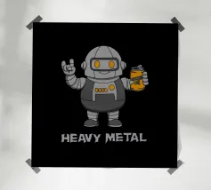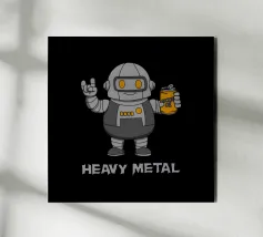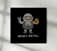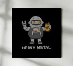 Un sorridente robot dei cartoni animati fa il segno della mano rock mentre tiene in mano una lattina di "Rockin' Oil". Questo design intelligente trasforma la frase "Heavy Metal" in un gioco di parole, mescolando la cultura musicale con un simpatico fascino robotico. Perfetto per i fan del rock, i metallari e tutti coloro che amano l'arte spiritosa con un tocco di umorismo.