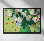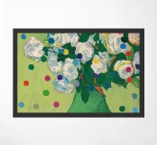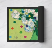 Ispirato a Van Gogh, questo quadro moderno combina un vaso verde con rose bianche e frammenti di coriandoli colorati in motivi astratti. Le pennellate vibranti e gli elementi botanici portano freschezza e felicità, perfetti per qualsiasi interno!