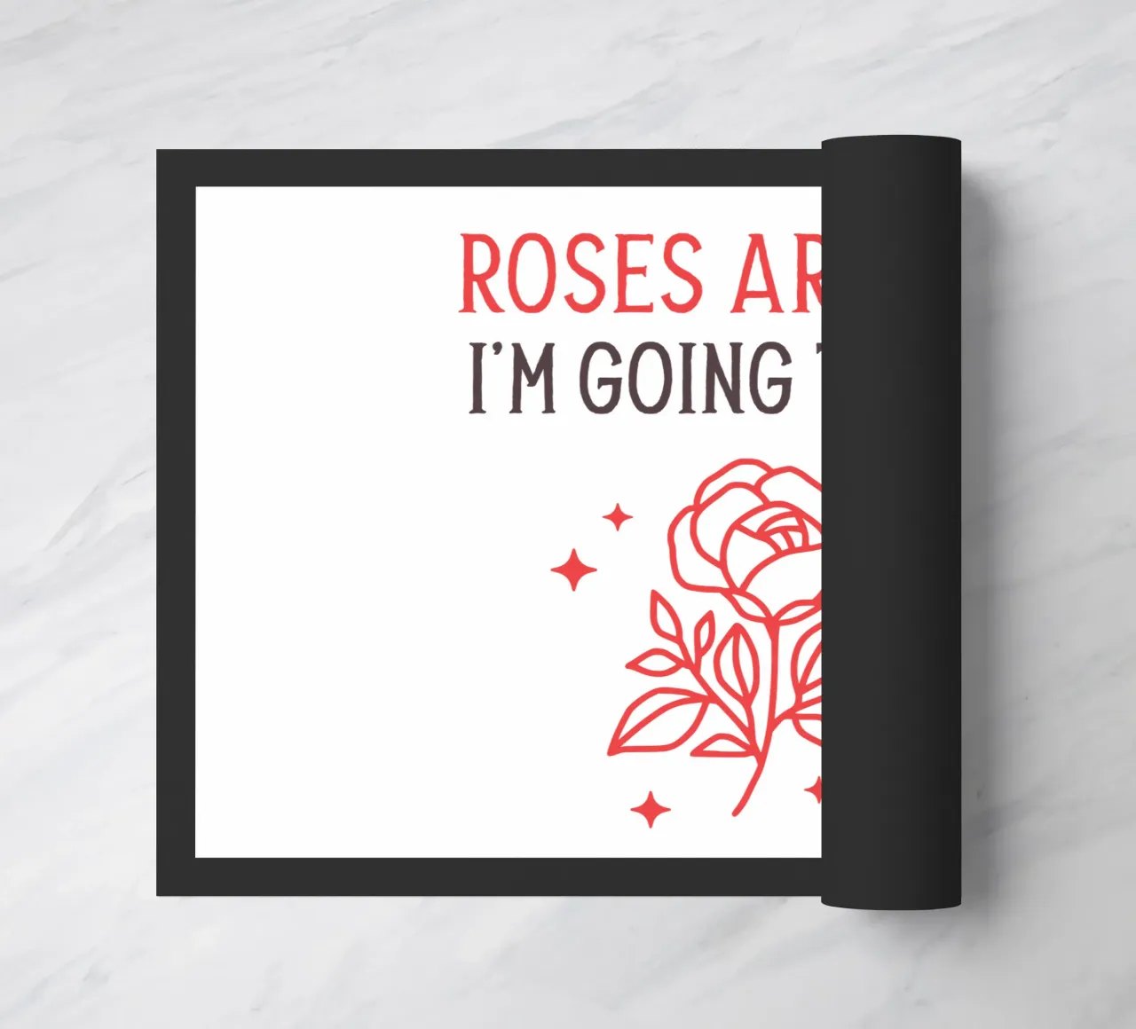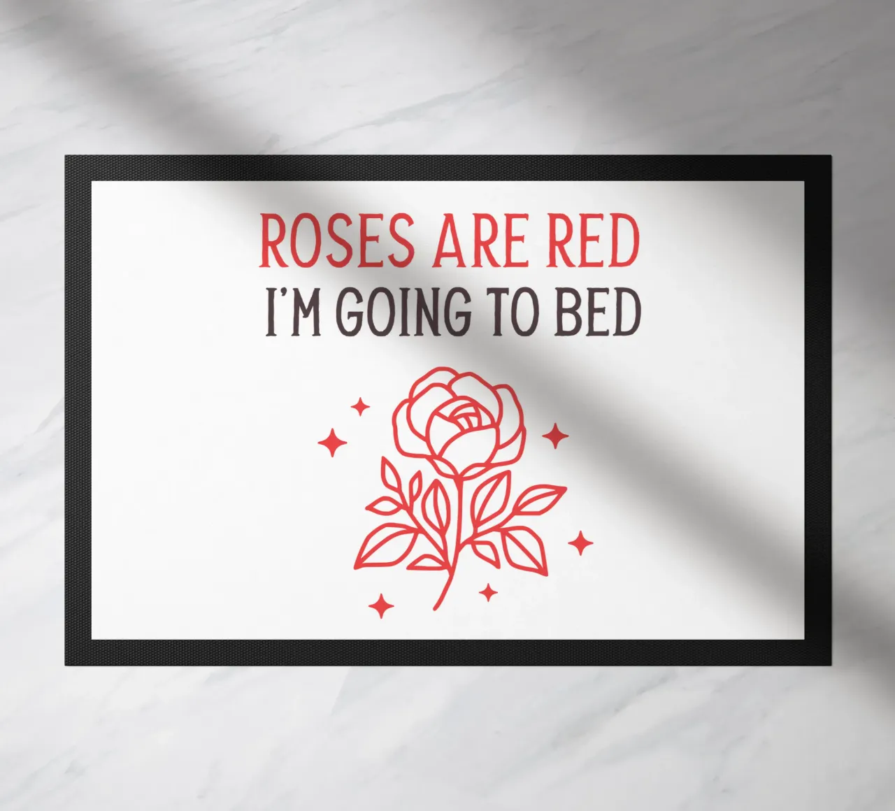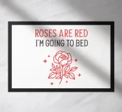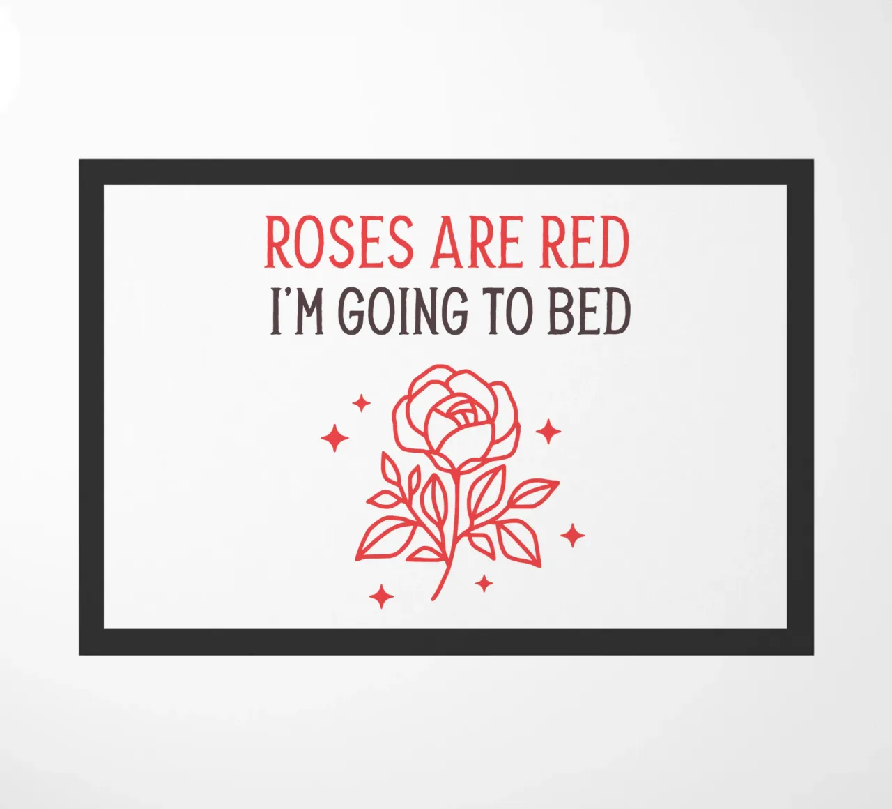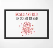 Un messaggio umoristico con un gioco di parole su una filastrocca classica. Sotto il testo, la semplice sagoma rossa di una rosa è circondata da piccole stelle.
