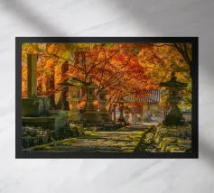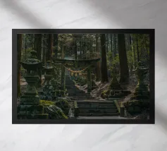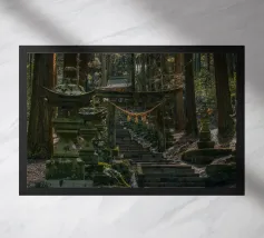 Salite i gradini di pietra per raggiungere un santuario di fiori di sakura, dove un antico santuario si erge in mezzo alla foresta, abbracciato dal bagliore del sole.