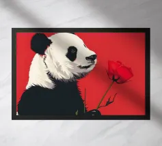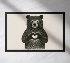 Questa incantevole opera d'arte mostra la silhouette di un orso che tiene delicatamente un fiore tra le zampe su uno sfondo stellato e mistico. L'armoniosa combinazione di buio, luce e natura crea un'atmosfera unica che invita a sognare. Un motivo perfetto per chi ama la magia della natura e degli animali.Sagoma di un orso con un fiore